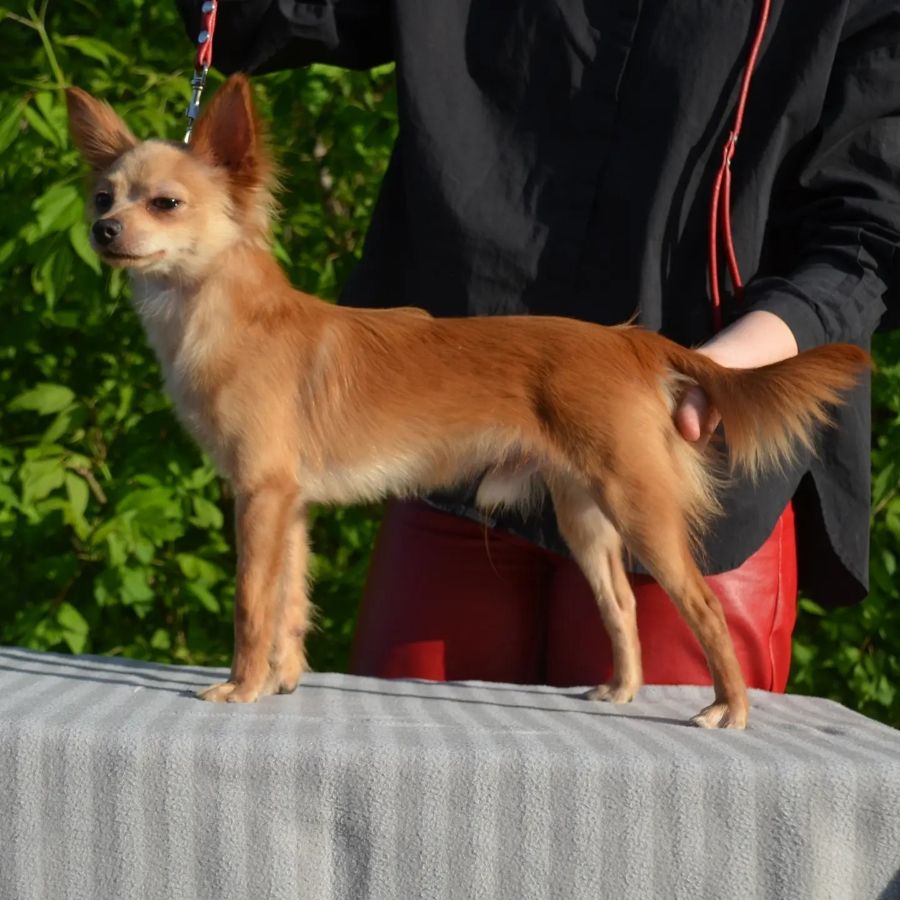 Русский той длинношерстный Амвер Мелоди Эстет (Кузя), окрас палевый,